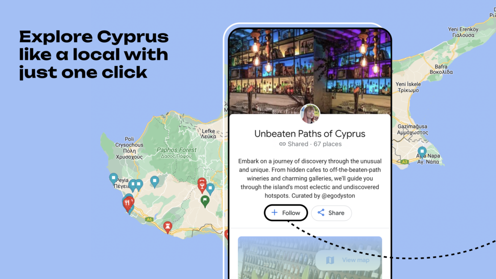 You'll get a Google maps link to a curated map of the coolest local spots of Cyprus. By following it, you install all the locations to your own Google Map